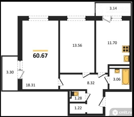2-комнатная квартира 60,67 кв.м