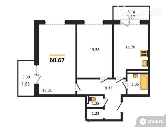 2-комнатная квартира 60,7 кв.м