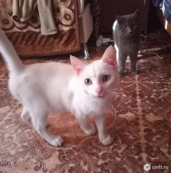 Милые котята ищут дорых хозяев. Дымчатый окрас девочка, белый кот. Им где-то 4-5 мемяцев.