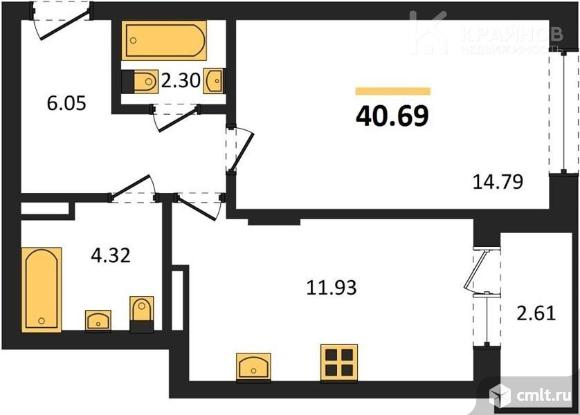 1-комнатная квартира 40,69 кв.м