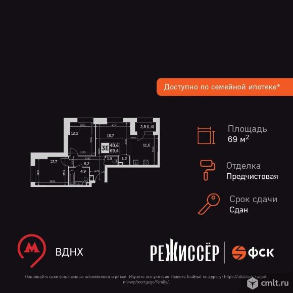 Продам 3-комн. квартиру 69.4 кв.м.