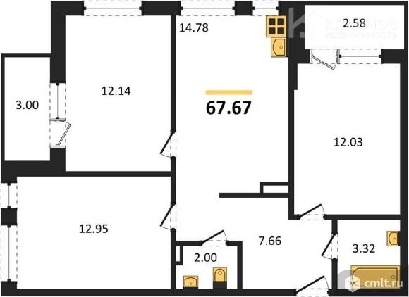 3-комнатная квартира 67,67 кв.м