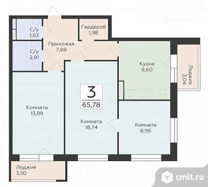3-комнатная квартира 65,78 кв.м