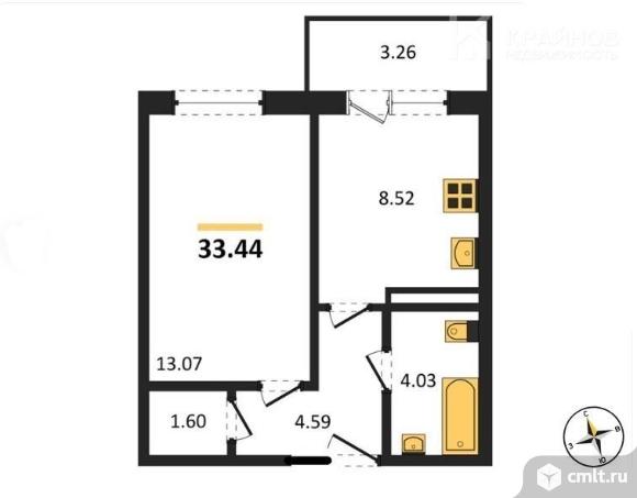1-комнатная квартира 33,44 кв.м