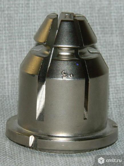 Изделие высокого качества, масса 420 грамм, предназначено для надёжной фиксации инструмента. Тяжёлый жёсткий патрон с возможностью подачи смазочно-охлаждающей жидкости через центр. Зажим без люфта, жёсткость на уровне промышленных патронов, в отличие от сборных ER с переходниками. Диаметр посадочного отверстия под цангу/инструмент (верх): 9 мм Диаметр нижнего отверстия: 13 мм Общая высота: 60,3 мм Диаметр основания (самая широкая часть): 52,7 мм Масса: 420 г Материал: высококачественная инструментальная сталь Форма: конусообразная (трапецеидальная, расширяющаяся книзу), 6-лепестковый цанговый зажим