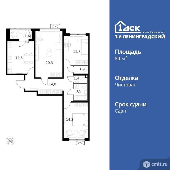 Жилая площадь 46.3 м2, кухня 14.3 кв. м, ремонта нет, окна выходят во двор и на улицу. Квартира располагается на 13 этаже 14-этажного панельного дома в ЖК 1-й Ленинградский. Дом оборудован пассажирским лифтом. [#8180916#]