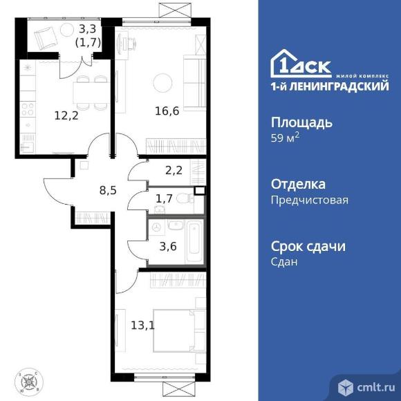 Продается 2-комн. квартира, площадью 59.6 м2.