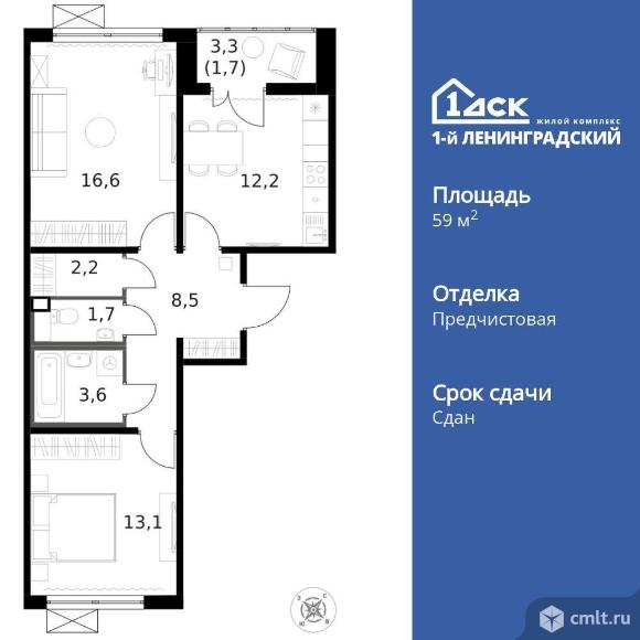 Продам 2-комн. квартиру 59.6 кв.м.