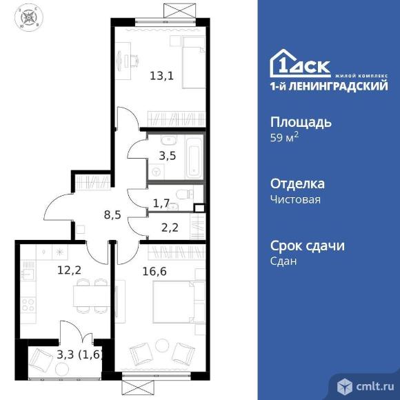 Продам 2-комн. квартиру 59.4 кв.м.