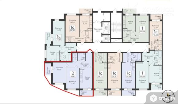 2-комнатная квартира 56,43 кв.м