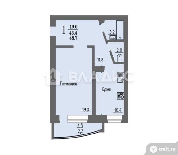 1-комнатная квартира 48,7 кв.м