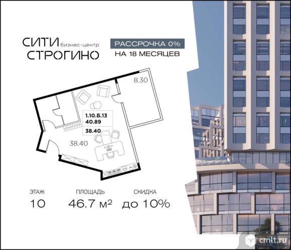В продаже от застройщика комфортабельный Smart-офис площадью 46.7 м на 10 этаже в премиальном бизнес-центре Сити Строгино. Срок сдачи - 2028 год.