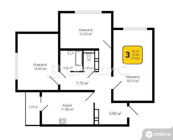 3-комнатная квартира 77 кв.м