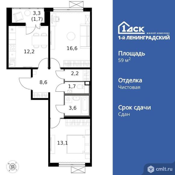 Продам 2-комн. квартиру 59.6 кв.м.