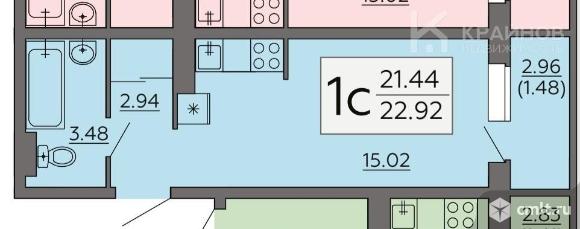 1-комнатная квартира 21,6 кв.м