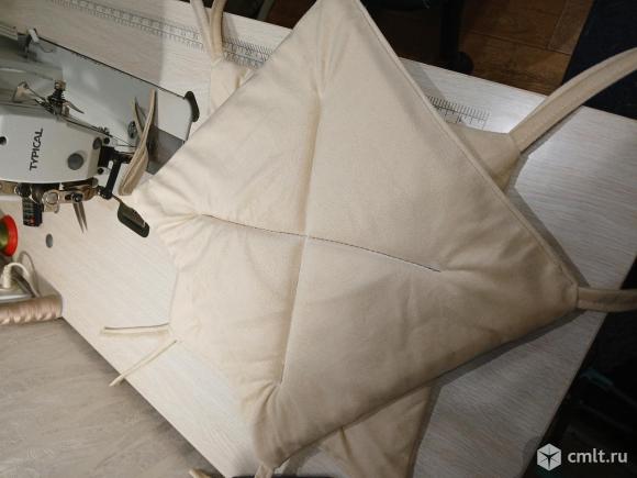 Продаю сидушки на стулья или табуретки, на завязках и резинке. Салатовые 6 ш,.светлые 2 шт, и 2 шт, светлые на кухонные стулья. Ткань флок хорошо чистится, внутри пенополиуретан, простеган. На заказ любого цвета.