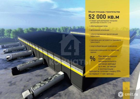 Код объекта: 2097842.<br>Сдается комплекс, включающий в себя склады различного рода деятельности. <br> <br>Сервис УК предлагает услуги 24/7:<br> <br>-Помощь в подборе персонала<br> <br>-Доставка сотрудников<br> <br>-Питание сотрудников<br> <br>-Общий чат резидентов<br> <br>-Досуговые и спортивные мероприятия<br> <br>Первый комплекс ЛАЙТ ИНДАСТРИАЛ ( комплекс из 70 зданий по 1450 кв.м)<br> <br>Благоустроенная территория, подведенные коммуникации, асфальтированный участок, введен в эксплуатацию<br> <br>Высота: 4,2 м до ферм, 6 м до конька<br> <br>+3 административно-бытовых комплекса по 42 кв.м ( включают кабинеты, раздевалки, душевые, с/у)<br> <br>+3 ворот для разгрузки-погрузки 3,6х4,2 м<br> <br>+беспылевые полы, панорамное остекление<br> <br>+автономная котельная конструкторского бюро GEFFEN<br> <br>+полностью асфальтированная прилегающая территория<br> <br>+парковка для легкового и грузового транспорта<br> <br>+энергосберегающее освещение<br> <br>+система автоматической пожарной сигнализации<br> <br>+интернет (6 провайдеров)<br> <br>+охрана <br> <br>!!ВАЖНО!!<br> <br>ПРИ АРЕНДЕ ЗДАНИЯ (ЗАКЛЮЧЕНИИ ПРЕДВАРИТЕЛЬНОГО ДОГОВОРА АРЕНДЫ) ЗА 4 МЕСЯЦА ДО ВВОДА В ЭКСПЛУАТАЦИЮ - АРЕНДАТОР ПОЛУЧАЕТ СКИДКУ 20% НА ПЕРВЫЕ 11 МЕСЯЦЕВ АРЕНДЫ!!<br> <br><br>Второй комплекс ПАРК ЛОГИСТИК (комплекс из зданий по 5184 кв.м с АБК)<br> <br>Высота: 8 м<br> <br>Класс В+<br> <br>Общая площадь строительства 52 000 кв.м<br> <br>+5 ворот для разгрузки-погрузки (докшелтеры на высоте 1,2 м)<br> <br>+обеспыленные полы<br> <br>+автономная котельная<br> <br>+асфальтированная прилегающая территория<br> <br>+парковка для легкового и грузового транспорта<br> <br>+энергосберегающее освещение<br> <br>+внешнее освещение по периметру здания<br> <br>!!ВАЖНО!!<br> <br>ПРИ АРЕНДЕ ЗДАНИЯ (ЗАКЛЮЧЕНИИ ПРЕДВАРИТЕЛЬНОГО ДОГОВОРА АРЕНДЫ) ЗА 4 МЕСЯЦА ДО ВВОДА В ЭКСПЛУАТАЦИЮ - АРЕНДАТОР ПОЛУЧАЕТ СКИДКУ 20% НА ПЕРВЫЕ 11 МЕСЯЦЕВ АРЕНДЫ!!<br> <br><br>Звоните или пишите, с удовольствием отвечу на все Ваши вопросы!)