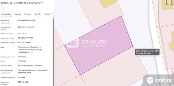 Код объекта: 2122313.<br>Продаётся участок в посёлке Латная. Площадь 14.5 соток. Кадастровый номер 36:28:0200019:14. ИЖС. По фасаду 27.5 метров. Межевание есть. Асфальт до дома. Газ, свет по улице. Локация обжитая, рядом живут соседи. Один собственник. Без обременений. Ограничение по зонам отсутствуют. Быстрый выход на сделку. Звоните, пишите если не дозвонились. Приходите на просмотр.