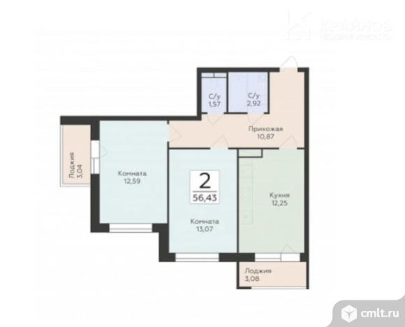 2-комнатная квартира 56,43 кв.м