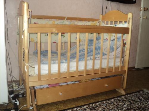 Продам детскую кровать "Наша мама" с матрасом. Горизонтальный маятник. Цвет - светлый. Ящик для белья. Хорошее состояние. Бортики в подарок.
