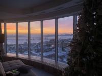 В центре города,расположен на уровне 6-7 этажей в 7-этажном кирпичном доме.Потолки 3-4 метра.Автономные коммуникации.100% отделка в стиле барокко.Встроенная мебель.Витражи.Зимний сад.Сауна.Охрана.Прекрасный вид на водохранилище.2 гаража в подарок.Торг.