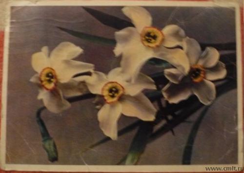 Открытка. Нарциссы. Фото А. Шерстнева. Издательство "Правда". 4.III.1960 г. Т. 500 000 экз. Зак. 705