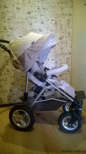 Цвет бежевый, колеса с подкачкой, удобная, маневренная. В компекте: - дождевик - зимний набор: муфта для мамы, накидка на ножки, матрасик. 10.04.2014 09:25