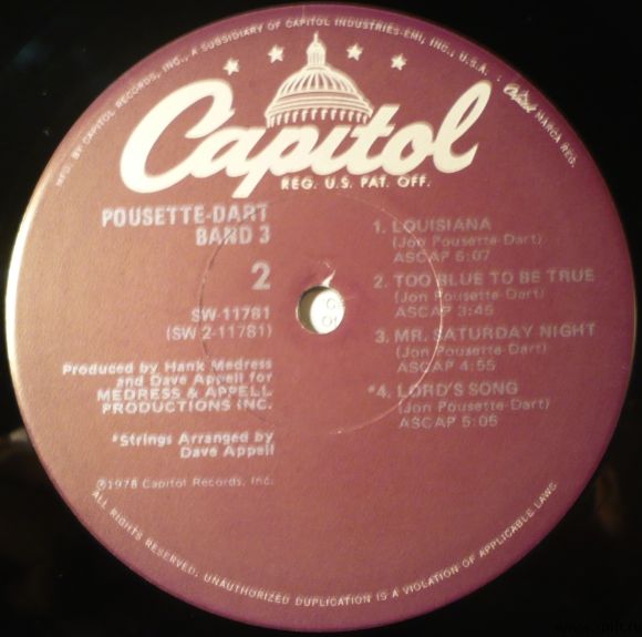 Грампластинка (винил). Pousette-Dart Band. Pousette-Dart Band 3. 1978. Capitol. SW-11781. США.