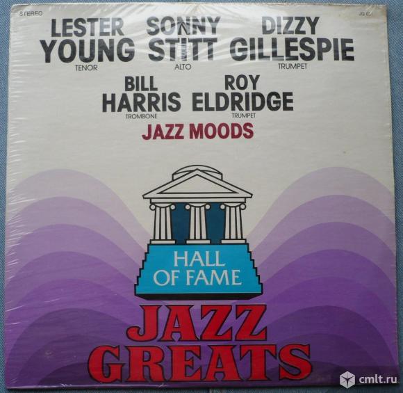 Lester Young (tenor), Dizzy Gillespie (trumpet), Sonny Stitt (alto), Roy Eldridge (trumpet), Bill Harris (trombone). Jazz Moods. 1. I Didn't Know What Time It Was / 2. Lover Man / 3. The Man I Love / 4. Tenderly / 5. My Old Flame // 1. Body And Soul / 2. A Ghost Of A Chance / 3. Imagination / 4. I'll Never Be The Same / 5. Stardust. Sleeve notes - Pete Sokolow. Hall Of Fame - Jazz Greats, 1978. JG 631. USA. Жанр: Jazz. Стили: Bop, Post Bop, Cool Jazz, Easy Listening. Фабрично запечатана [Factory sealed].