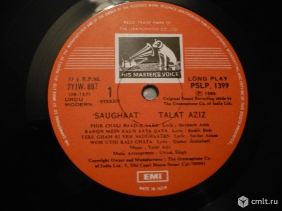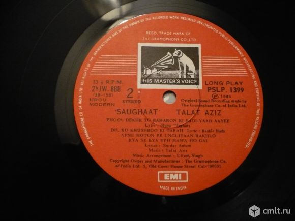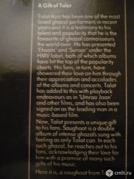 Грампластинка (винил). Гигант [12" LP]. 2 пластинки [2 LPs]. Talat Aziz. Saughaat. Индия.