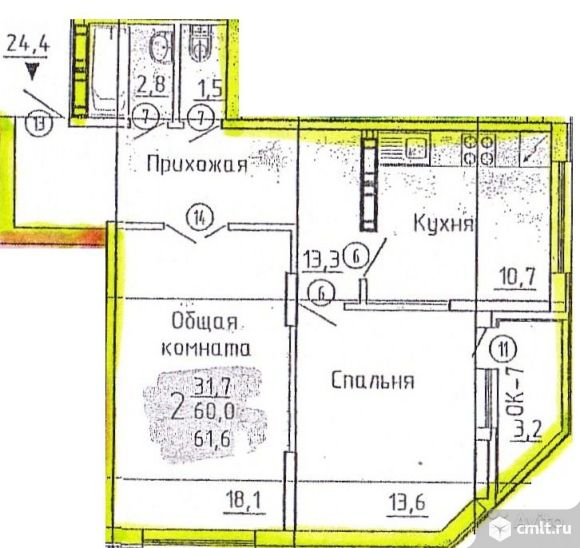 2-комнатная квартира 61,6 кв.м ул.Пешестрелецкая,поз.5,с отделкой,застройщик "ДСК"