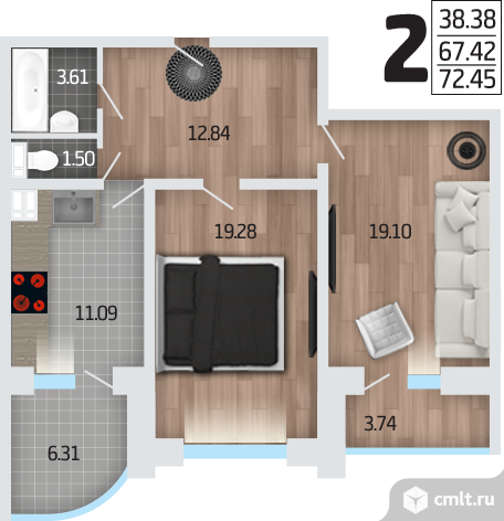 2-комнатная квартира 73 кв.м