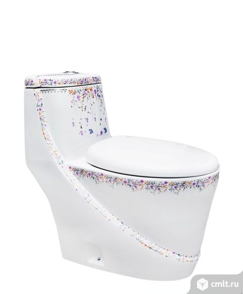 Унитаз имеет декоративный рисунок на чаше унитаза и бачке. Моноблок не имеет стыка между чашей унитаза и бочком. Этот унитаз прекрасно впишется в интерьер любой ванной комнаты. Унитаз моноблок с жёсткой крышкой-сидением с механизмом плавного опускания "Slow Closing", возможностью двойного смыва "Dual Flush" 3л/6л, для экономии воды, внутренним покрытием чаши "WATER SLICK" обеспечивающим превосходный блеск и защиту и нижним подводом воды, снижающим шум. Унитаз абсолютно новый, в упаковке. Очень красивый унитаз с очень оригинальным декором в виде цветов. Собственник. 15.04.2016 08:51