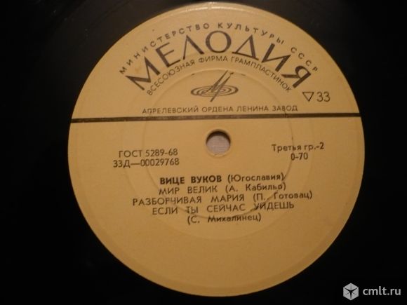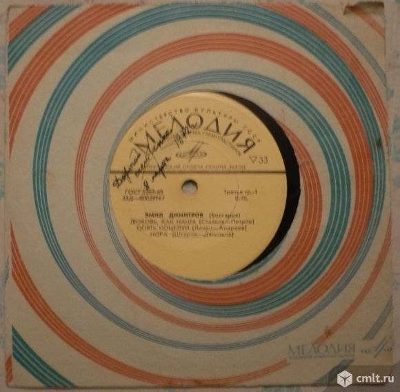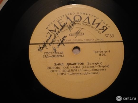 Эмил Димитров (Болгария) // Вице Вуков (Югославия). Любовь, как наша (Стайков - Петров) / Опять поцелуй (Лонец - Андреев) / Нора ( Штерев - Дамошов) // Мир велик (А. Кабильо) / Разборчивая Мария (П. Готовац) / Если ты сейчас уйдешь (С. Михалинец). Моно 33Д-00029767-8. ГОСТ 5289-68. Апрелевский завод (желтый лейбл). Жанр: Pop. Стили: Pop 60s, Twist. Пластинка прослушана: очень хорошо [vg]. Стандартная бумажная обложка фирмы "Мелодия": очень хорошо [vg].