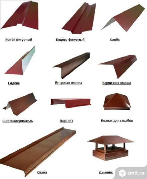 Изготавливаем доборные элементы кровли (коньки, торцевые, карнизные, планки примыкания и др.) и сайдинга (углы простые и сложные, стыковочные простые и сложные и нащельники др.), оконные отливы и откосы, колпаки на забор, колпаки на дымоходы, а также другие различные профили из тонколистового металла.