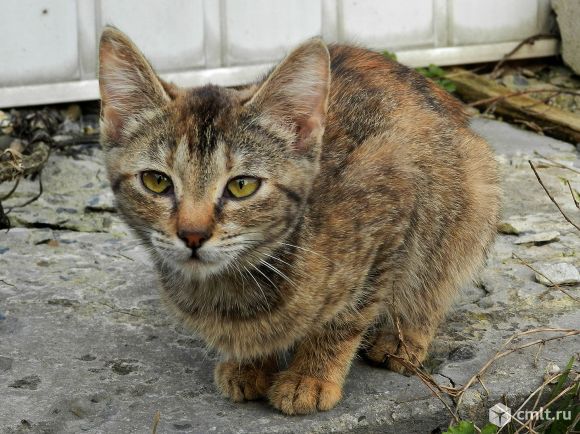 Котенок был найден под грудой кирпичей , промокший и изголодавшийся, явно сидел там не один день, в руки не давался…