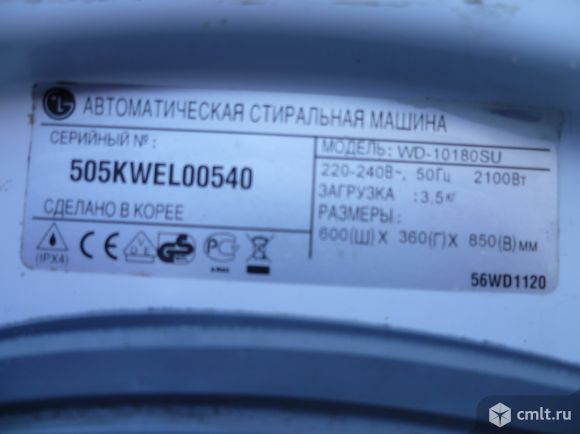 Стиральная машина LG WD-10180SU, по запчастям. Загрузка 3,5 кг, Глубина 36 см. Сборка Корея.