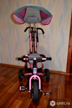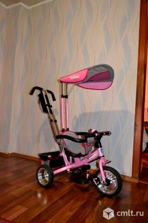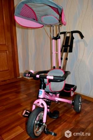 основные характеристики: пластиковые утолщеные колеса, cвободный ход педалей, независимая управляющая ручка,на которой находится удобная сумка для родителей, козырек-тент, удобная подставка для ножек, тормоз, страховочный обод, большая корзина для игрушек. при желании можно снять тент, ручку, страховочный обод и получится классический трехколесный велосипед! на все интересующие вопросы отвечу по телефону. возможен небольшой торг. 11.05.2016 22:33