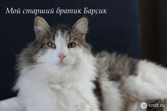 Я круглая, пушистая игривая и послушная. В туалет хожу в лоточек и у меня хороший аппетит, я кушаю всё. Когда я вырасту я буду такая же красивая, умная и пушистая как мой старший брат Барсик. Буду вам верным и добрым другом :-) 15.08.2016 14:32