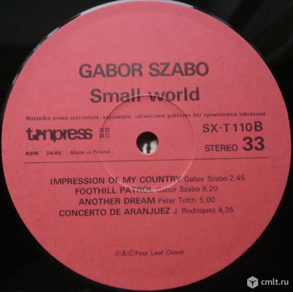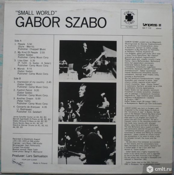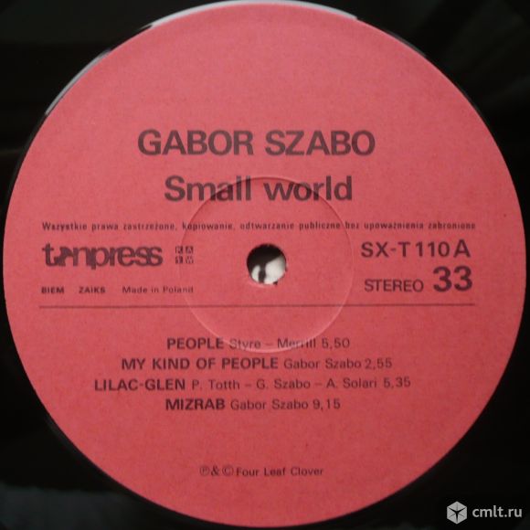 Грампластинка (винил). Гигант [12" LP]. Gabor Szabo. Small World. 1972. Tonpress, 1988. Poland.