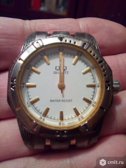 Часы муж., цвет золото. Снаружи вид нормальный, с обратной стороны-стертая поверхность, но идут отлично, но нет браслета и батарейки.