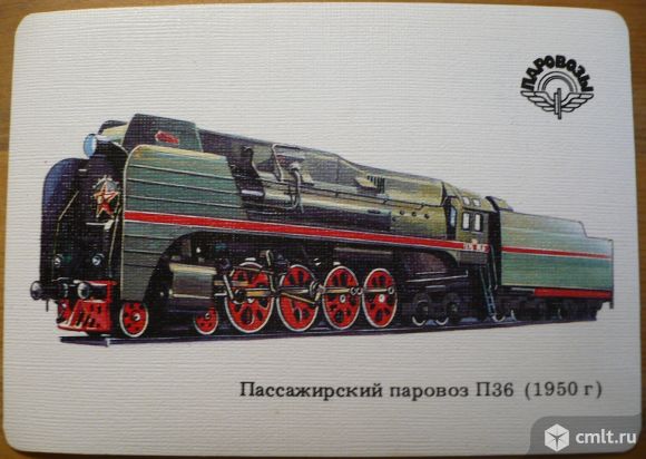 Карманный календарик. Паровозы. Пассажирский паровоз П36 (1950 г.). 1991 г. Издательство "Транспорт"