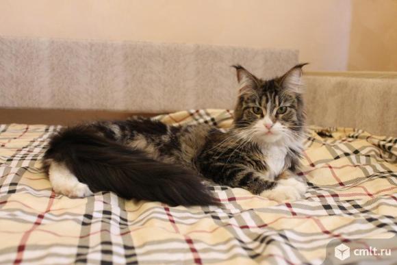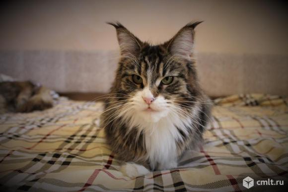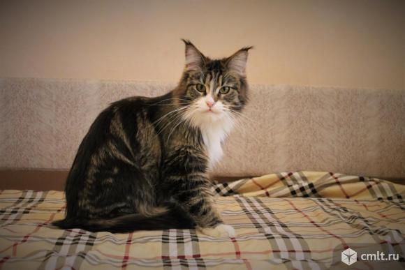 Продаётся кшечка мейн кун. Дата рождения 28.11.2016. Окрас черная мраморная с белым. Привита по возрасту, социализирована. Демонстрирует точное попадание в лоток и безошибочный поиск миски с едой, к когтеточке приучена, имеет ветпаспорт и комплект документов.