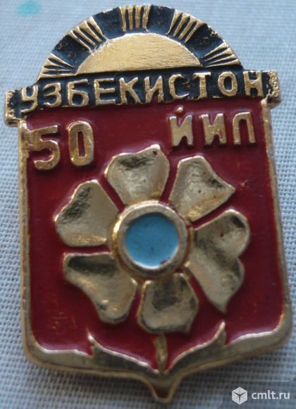 Значок "Узбекистон 50 йил", Узбекистан, Узбекская ССР, СССР, металл, эмаль.
