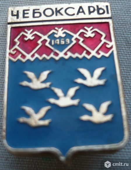 Значок "Чебоксары 1469", Чувашская Республика, Чувашия, столица, СССР, герб, металл, эмаль.