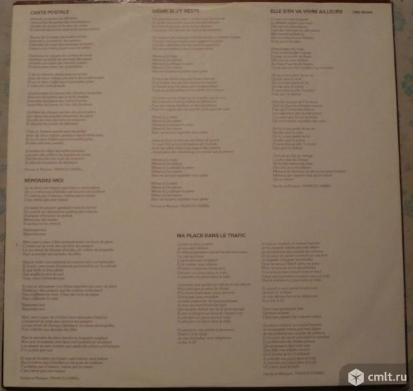 CBS 85344. Holland. Жанр: Rock, Pop. Стили: Rock, Pop, Chanson. Пластинка прослушана: отлично [E]. Обложка: очень хорошо [VG+]. Иллюстрированный внутренний конверт с текстами песен: отлично [E].