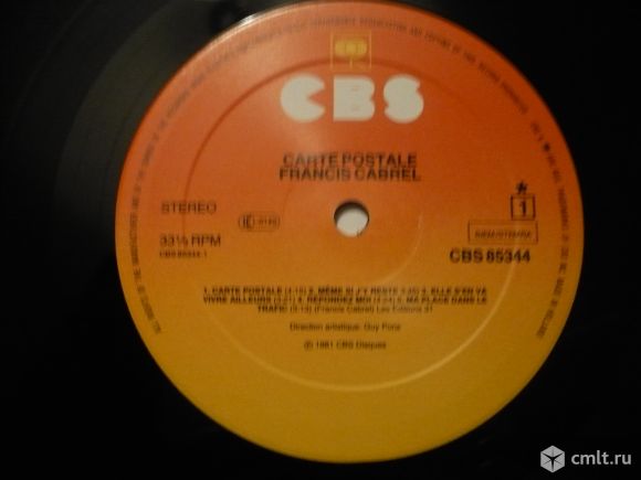 Грампластинка (винил). Гигант [12" LP]. Francis Cabrel. Carte Postale. (P)(C) 1981 CBS Disques.