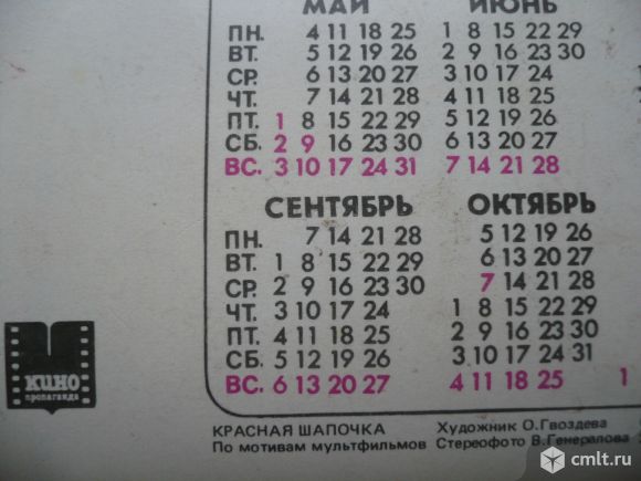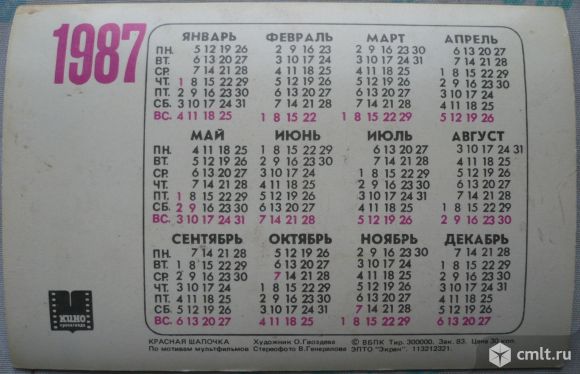 Карманный календарик, стерео (3D), 1987. Красная шапочка. По мотивам мультфильмов. ЭПТО "Экран".