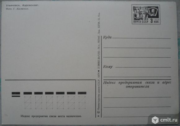 Почтовая открытка "Ульяновск. Аэровокзал". Фото Г. Костенко. (C) Министерство связи СССР, 1974.