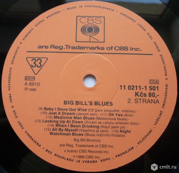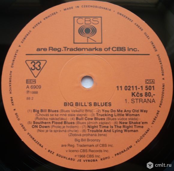 1) Big Bill Blues (1936) / 2) You Do Me Any Old Way (1937) / 3) Trucking Little Woman (1938) / 4) Bull Cow Blues (1932) / 5) Southern Flood Blues (1937) / 6) New Shake'em On Down (1938) / 7) Night Time Is The Right Time (1938) / 8) Trouble And Lying Woman // 9) Baby I Done Got Wise (1939) / 10) Just A Dream (1939) / 11) Oh Yes (1939) / 12) Medicine Man Blues (1940) / 13) Looking Up At Down (1940) / 14) When I Been Drinking (1941) / 15) All By Myself (1941) / 16) Night Watchman Blues (1941). (C) 1968 CBS Inc. Stereo 11 0211-1 501. Czechoslovakia. Жанр: Blues. Стиль: Country Blues, Chicago Blues. Пластинка прослушана: идеально [M-]. Ламинированная обложка: идеально [M-]. Оригинальный внутренний конверт с информацией: идеально [M].